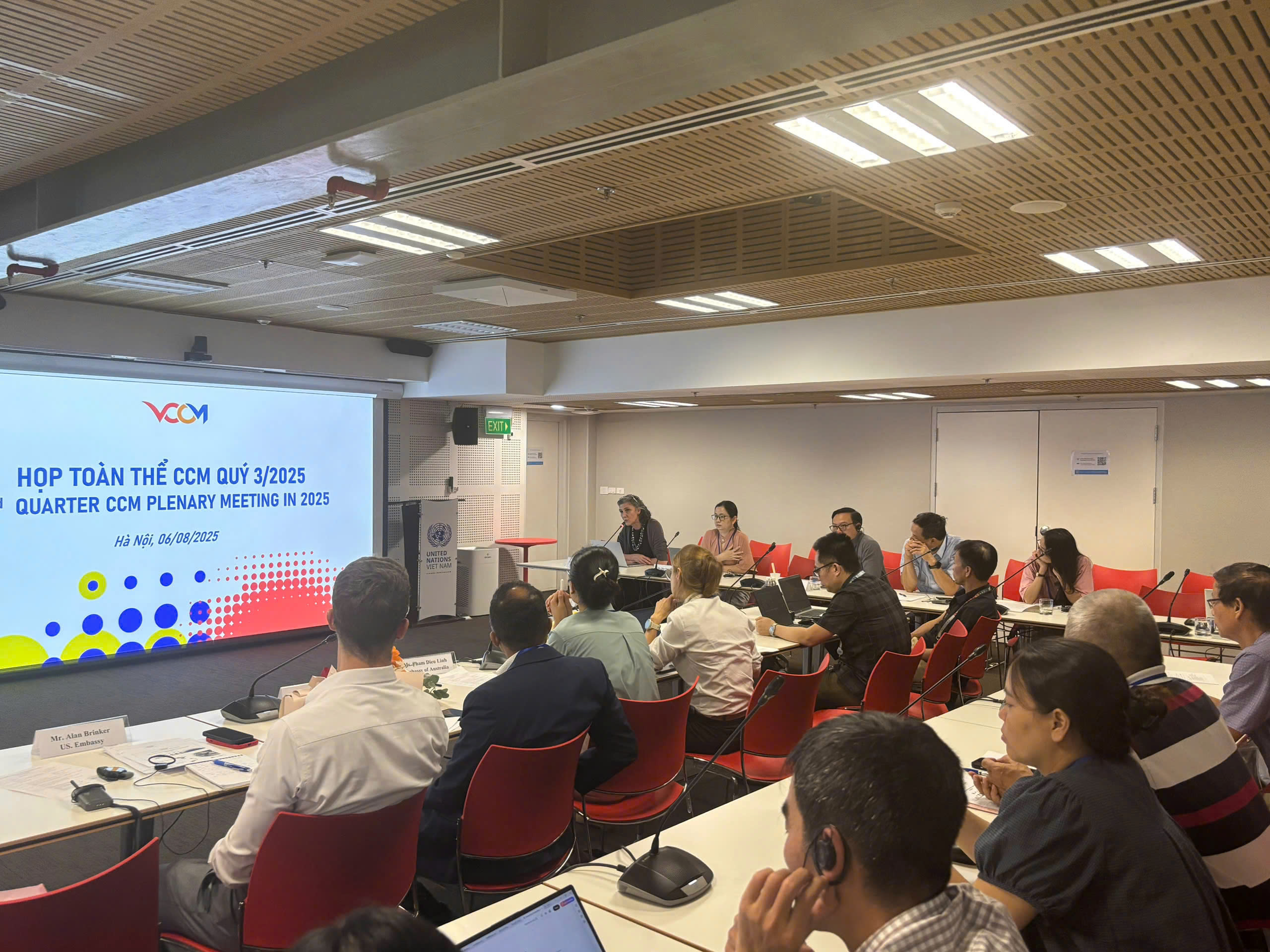 Ngày 06/8/2025, tại Tòa nhà Xanh Liên Hợp Quốc, Ban Điều phối Quốc gia Quỹ Toàn cầu Phòng, chống AIDS, Lao và Sốt rét tại Việt Nam (CCM Việt Nam) đã tổ chức thành công cuộc họp Toàn thể Quý III năm 2025. Cuộc họp có sự tham dự của Thứ trưởng Bộ Y tế, PGS.TS Nguyễn Thị Liên Hương – Chủ tịch CCM; các Phó chủ tịch, đại diện Trung tâm Kiểm soát và Phòng ngừa Dịch bệnh Hoa Kỳ (CDC), đại diện Cục Y tế Dự phòng, các thành viên chính thức và dự khuyết của CCM nhiệm kỳ 2024-2026, đại diện các đơn vị nhận tài trợ chính (PR), các tổ chức xã hội, cộng đồng và các đối tác quốc tế.